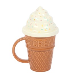 Gönnen Sie sich einen süßen Schluck mit diesem 500 ml fassenden Keramikbecher in Form einer klassischen Eistüte mit einem lustigen, gewundenen Deckel. Dieser auffällige Becher eignet sich perfekt für Getränke mit einer verspielten Note und ist ein herausragendes Geschenk für alle, die ausgefallene Küchenutensilien lieben.