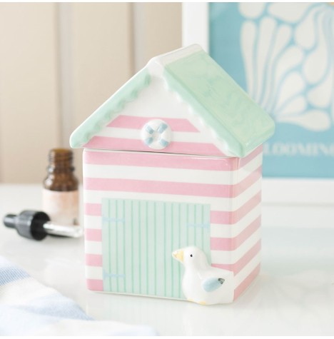 Diese entzückende Duftlampe hat die Form einer klassischen pastellfarbenen Strandhütte und verleiht jedem Raum einen Hauch von Küstencharme. Die Lampe ist mit einen abnehmbaren Deckel und eine geräumige Schale, die sich perfekt für ein entspannendes, vom Meer inspiriertes Dufterlebnis eignet.