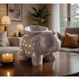 Für seinen eleganten und natürlichen Stil aus Keramik, inspiriert vom Elefanten, einem Tier, das oft wegen seiner positiven Symbolik gewählt wird: Weisheit, Stärke und Glück. Hergestellt aus weiß lackiertem Keramik. Ein hübscher Duftbrenner, der in jeden Raum passt und eine warme, natürliche Atmosphäre schafft. Für sein Design: Er ist so gestaltet, dass er Ihre Duftwachse, Düfte, ätherischen Öle und andere Lösungen aufnehmen kann.